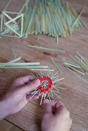 3〜5mmの太めの麦で、ダイナミックなヒンメリやストロースター、麦細工作りに向いています。